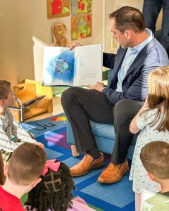 To help create this positive association with reading, Kiddie Academy leaders visited Kiddie Academy of Abingdon to read to the children. Among those was President of Kiddie Academy® Educational Child Care, Joshua Frick.